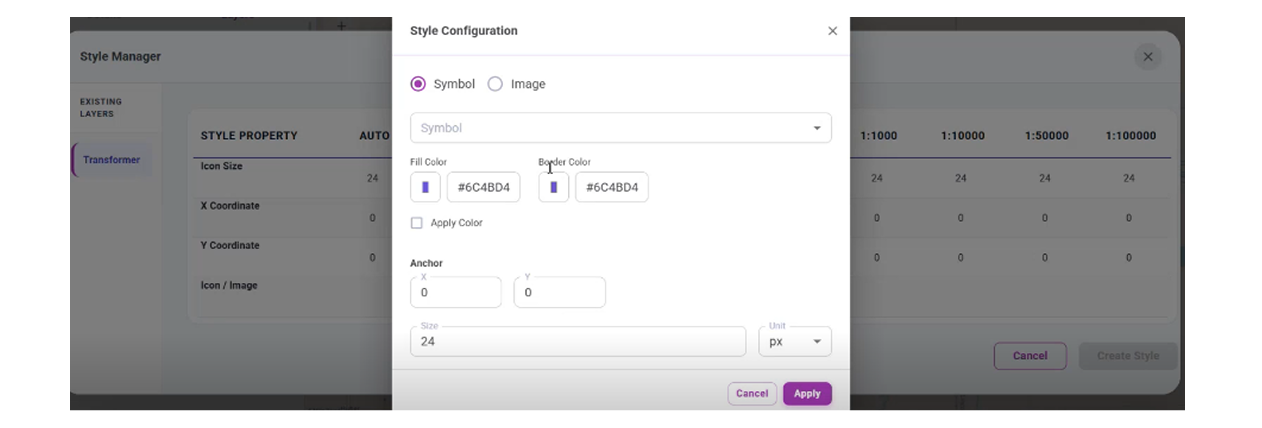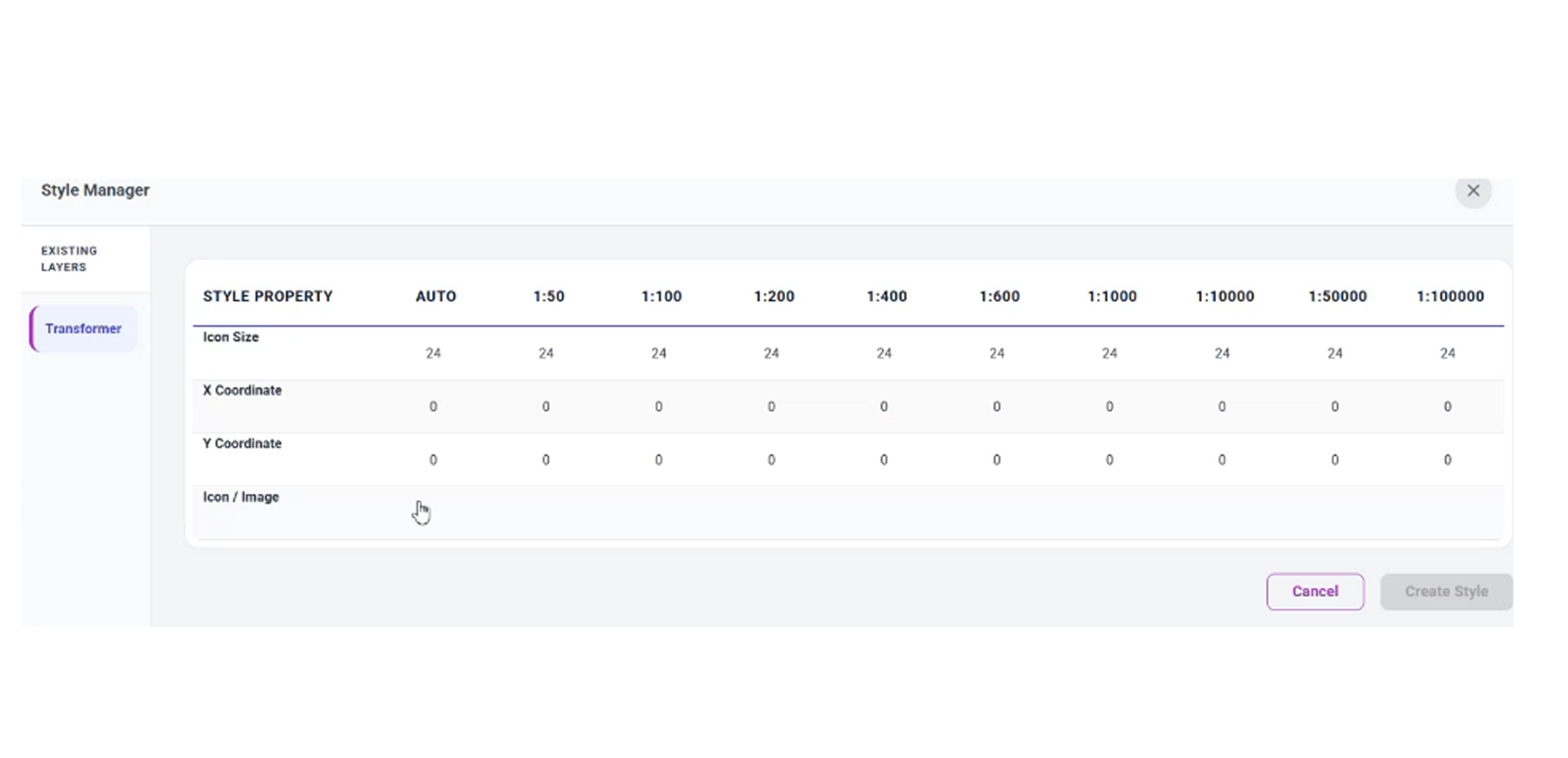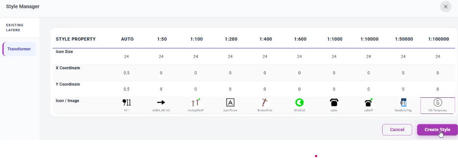 The Style Manager allows users to customize how layers and sublayers appear on the map. You can assign different icons, colors, and sizes for each zoom level, making the visualization clearer and easier to understand.